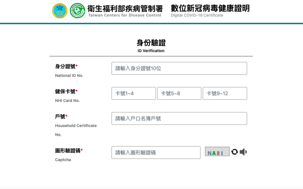 3、執行身份驗證:填入個人身分證號、健保卡號、戶號(皆為必填欄位)