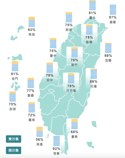 試遍除霉方法卻都沒效?最近冷空氣發威,最有感的就是被潮濕的天氣籠罩著,家裡的衣服脫完水還曬不乾,晚上睡覺的時候,棉被也總是蓋不暖,甚至眼睛、鼻子還容易過敏。尤其台灣的氣候更加潮濕,各地相對濕度超過70%、80%(見下圖),濕度太高的話,小心黴菌和塵蟎就更容易滋生,誘發過敏、氣喘、鼻竇炎、慢性支氣管炎等呼吸道症狀,潮濕環境對於健康的影響,在現代醫學研究上也獲得證實。