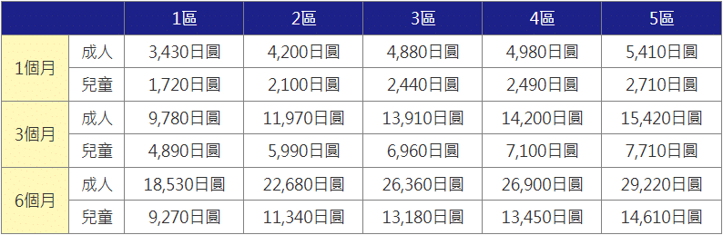 定期票價又分為通勤定期票、通學定期票兩種,可以根據需求購買1個月、3個月或6個月的定期票,而定期票也會因為不同分區有不同價格。
