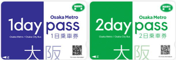 大阪地鐵巴士乘車券分為一日券及兩日券,可以在使用期限內無限次搭乘大阪地鐵全線、大阪市營公車,還可在大阪市內享受20多個觀光設施優惠。