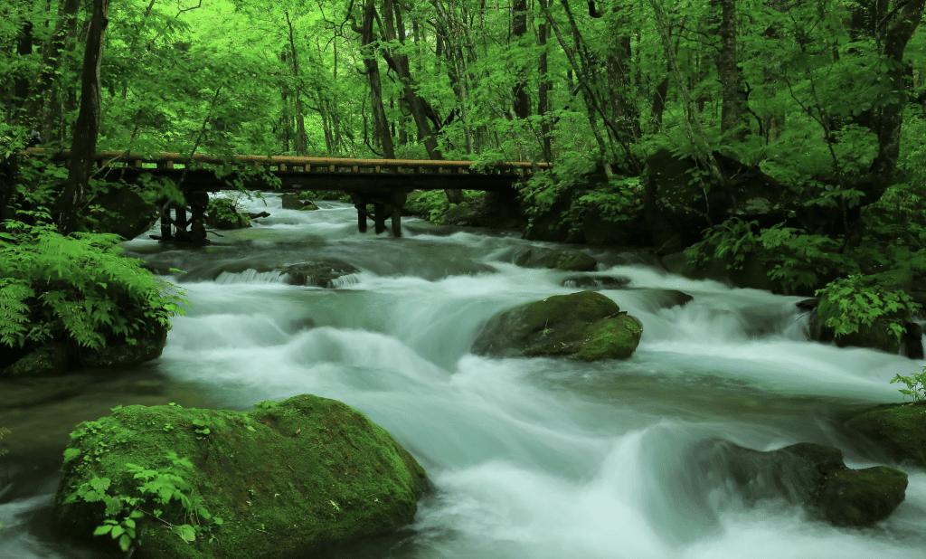 東北地區以自然景觀聞名,當雨季來臨布滿青苔的大地好像都努力吸收水分,在日本雨季展現他們最翠綠亮眼的樣子。與一旁的奧入瀨溪流形成天然負離子,彷若置身世外桃源,遠離城市中的塵囂。不過下雨天山上步道容易溼滑,大家前往要特別注意安全喔!