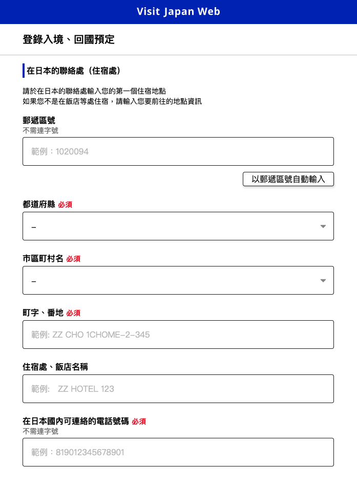 早期大家如果有去過日本,不知道你們還記不記得曾經在飛機上填寫過入境單?內容大概是在調查未來停留期間的住處資訊及個人在日本的聯繫方式等等。Visit Japan Web只是將入境單e化,如果是跟團直接引用旅行社給的資料也相當方便,待會於Visit Japan Web教學步驟中會再說明。