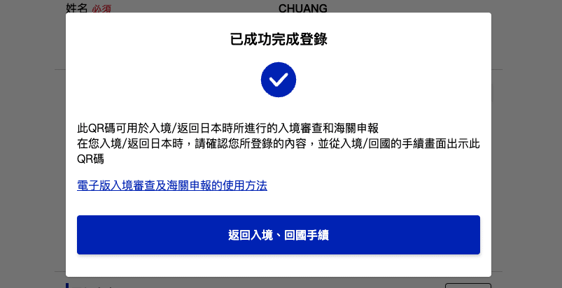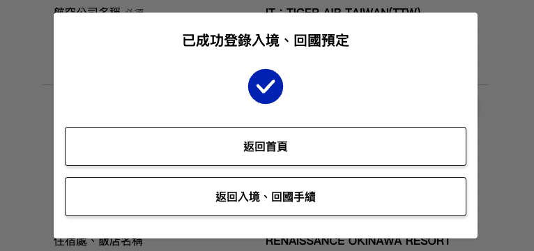 當出現此畫面,就代表已經成功完成登錄入境、回國預定資訊拉~